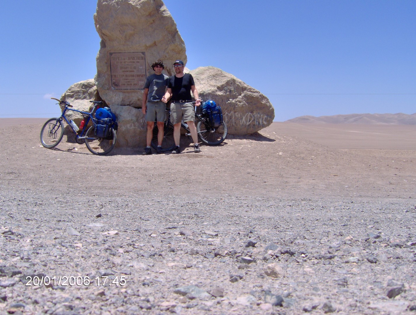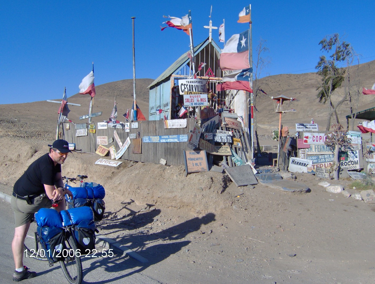 Uwe war mehrmals im Laufe des Jahres im Laden gewesen und immer hatte es mit intensiven Gesprächen über die berufliche und private Situation geendet. Es war beiden klar dass man mal wieder eine Auszeit brauchte um auf den Boden der Tatsachen zurück zu finden. Mithin gab es keine große Planung, Jens hat einfach zwei Fahrräder startklar gemacht und stand dann kurz vor Weihnachten an Uwes Haustür und wedelte in seiner Hand mit zwei Flugtickets Frankfurt – Santiago de Chile. Uwe hat dann noch über Werner Kaps vom Sporthaus Kaps Ausrüstung organisiert und im Januar ging es los.